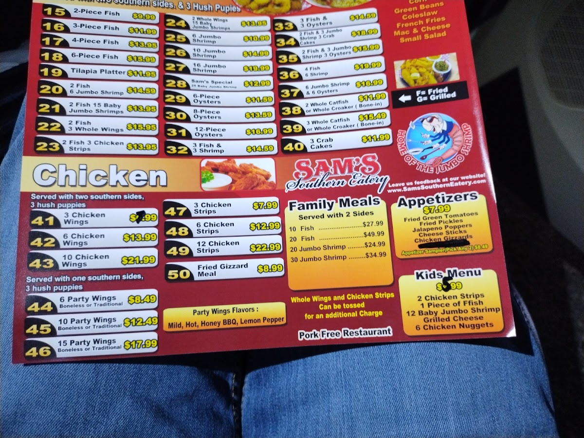 In a city brimming with culinary options, Sam's Southern Eatery resonates with a promise of familiarity and deliciousness. Whether you're returning for the fried fish, the wings, or just to enjoy a meal with loved ones, one thing is certain: this eatery highlights the best of Southern cooking, paired with a welcoming atmosphere that makes every visit feel like a family gathering. So, come hungry and prepare to enjoy a true flavor of the South!
